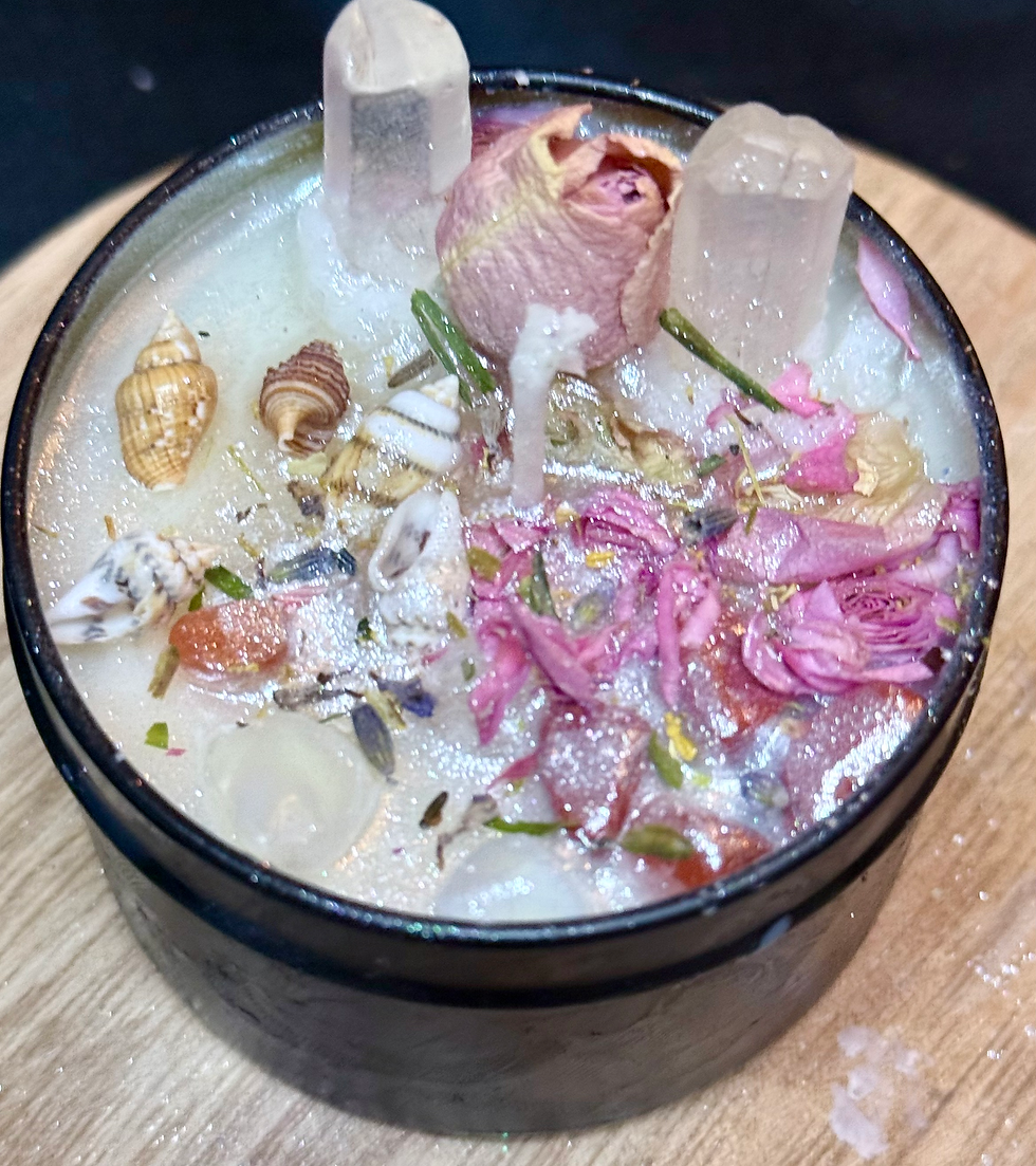 Welcome to our candle shop, where each candle is crafted with intention and blessed for your enjoyment. All of our crystals are genuine and from local shops, ensuring you receive the highest quality products. Explore our unique selection and find the perfect candle that resonates with you. Light up your space with love and positivity!